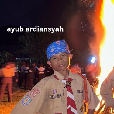 AYUB ARDIANSYAH lahir di Bengkulu, 19 September 2011. Beralamat di Jalan Pantai Indah Lokalisasi Pulau Baai RT 08 RW 02 Kota Bengkulu. Ia memiliki hobi memasak, meneliti, dan berpetualang, serta bercita-cita menjadi koki dan anak tekpang (teknik pangan). Di Buletin SMPN 19 Kota Bengkulu, ia bertugas mengisi RUBRIK PROFIL GURU. Pengalaman organisasinya antara lain Ketua OSIS SMPN 19 Kota Bengkulu periode 2024-2025, Pramuka, Paskibra, PMR, TIK, MTK, RISMA, dan lain-lain. Prestasi yang pernah diraih antara lain mengikuti seleksi Jambore Daerah, Juara 1 Dance Semaphore, Juara 2 Pentas Seni, Juara 2 Kreasi Yel-yel Peringatan Hari Bakti Pramuka, Juara 3 Kreasi Yel-yel Saka Bakti Husada, menjadi panitia pesta siaga 2024, menjadi siswa terkreatif dan aktif, juara 1 Pangkalan Terkreatif, Ranking 4 Kompetisi Baca Cepat, Juara 3 lomba Tunas Juara, menjadi pendamping sekaligus pelatih pramuka di SDN 77, 75, 67, dan MI Al Islam, Juara 2 lomba Masak se-Kelurahan, dan lainnya. Moto hidupnya adalah Berani memulai, berani melanjutkan. Kesan selama menjadi tim buletin baginya adalah sangat seru dan membuatnya mendapatkan banyak pengalaman. Ia berharap Tim Buletin selalu bersemangat dalam berkarya.*** (Wulan)