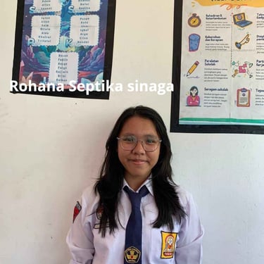 ROHANA SEPTIKA SINAGA, lahir di Bengkulu, 24 September 2011. Tinggal di Padang Serai Kota Bengkulu. Hobinya adalah membaca. Bercita-cita menjadi seorang psikolog. Di E-buletin SMPN 19 Kota Bengkulu, ia dipercaya mengelola RUBRIK BERITA. Selain di E-buletin SMPN 19 Kota Bengkulu, ia juga terlibat dalam kepengurusan OSIS SMPN 19 Kota Bengkulu. Prestasi yang pernah diraih adalah Juara Kelas dan Juara Umum di sekolah. Memiliki moto Jangan hidup kalau takut gagal. Selama menjadi tim buletin, ia merasa sangat senang karena ini merupakan pengalaman perdana baginya. Banyak pelajaran dan pengalaman berharga yang ia dapatkan. Harapannya, semoga buletin SMP Negeri 19 Kota Bengkulu dapat lebih sukses, maju, dan menghasilkan karya-karya yang menarik.